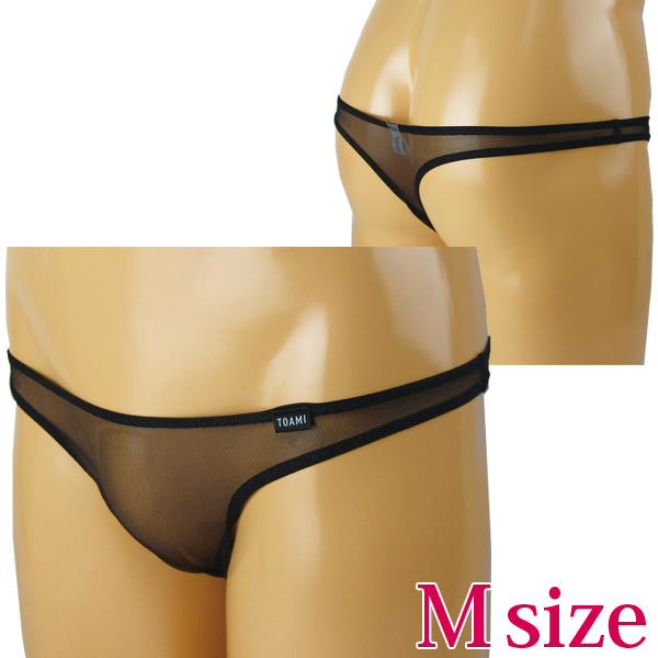 | 素肌が透けて見える極薄生地でありのままの貴男をアピールする男性用Tバック(日本製)。 男の魅力を上げるブラックカラー!「TOAMI」と書かれた黒タグもまたお洒落度高め♪ローライズ×スケスケ生地でセクシーに魅せつけます。 |
