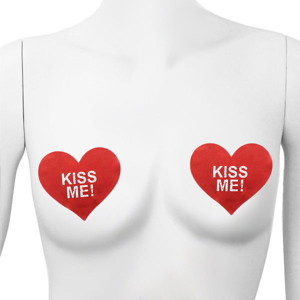 | 「KISS ME!」あなたの気持ちを赤いハートで伝えるニップレス。 肌保護のため乳首に触れる裏面の中央部分には粘着しない素材を使用!2枚1セット ※肌に合わない際はご使用をお控えください。 |