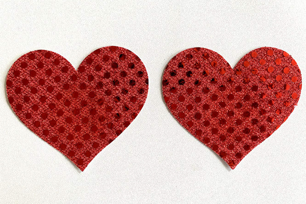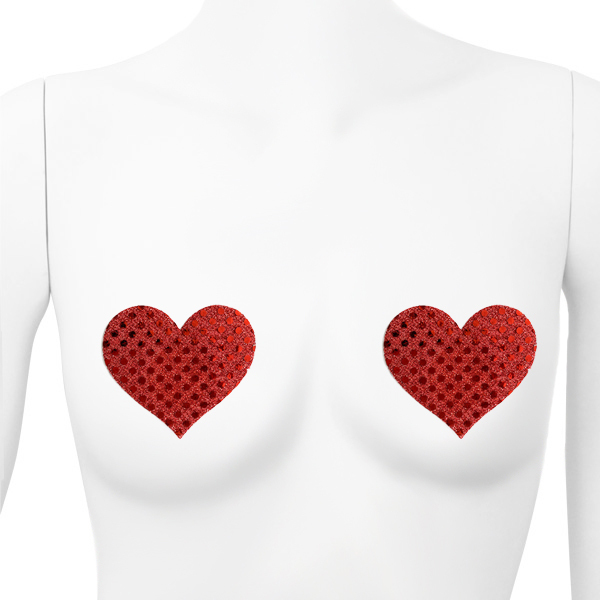 | キラキラ煌めくラメで貴方の想いを伝えるハート型のニップレス(赤)。 シンプルなデザインで使いやすい!擦れ、透け防止に是非どうぞ♪バストトップ裏面中央部分には粘着しない素材を使用。 2枚1セット |