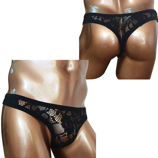 | 黒の花柄レースが男を華やかに魅せるメンズ用Tバック(ブラック)。 網目から程よく透けて見える露出度高めのセクシーな男性用ビキニパンツ!エレガントなデザインは女装用下着に最適です♪生地には伸縮性高く涼しげな素材を使用!洗濯はネットに入れて行うか、手洗いで優しく洗って下さい。 |