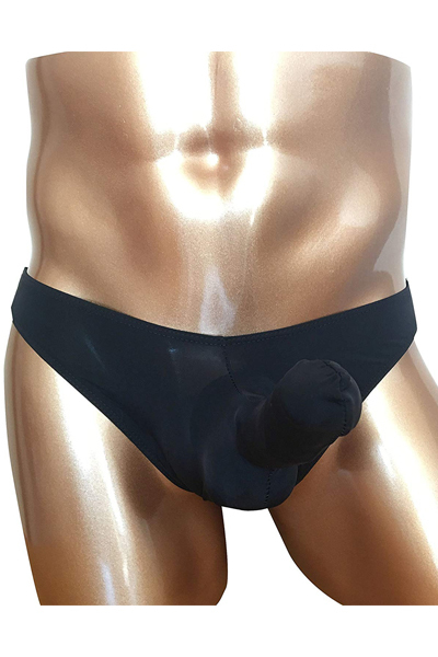 | サオを収納できるポケットが付いた穿き心地の良いメンズ用ショーツ(黒)。 肌触り柔らかく伸縮性の高い生地が下半身にフィット!アソコを一際際立たせるセクシーな男性用パンツ。 優しく手洗い、またはネットに入れて洗濯してください |