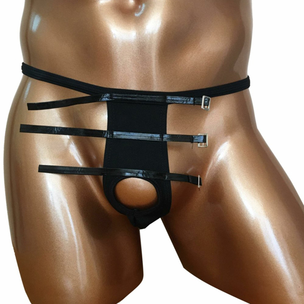 | タマ部分を露出する大胆さが魅力の拘束具付きメンズ用Tバック(黒)。 露出度高めの奇抜なデザインが視覚を刺激する一枚!洗濯する際は優しく手洗い、または網ネットに入れて洗濯して下さい。 |