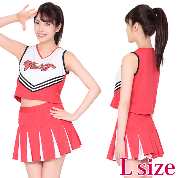 | 情熱的な赤のチアガール衣装で頑張る皆を元気に応援!大人気ロングセラーのチアガールコスプレに大きめサイズが登場♪胸元には大きく「VICTORY」に文字をプリント!動くたび赤×白のミニ丈プリーツスカートが綺麗に広がります♪ |