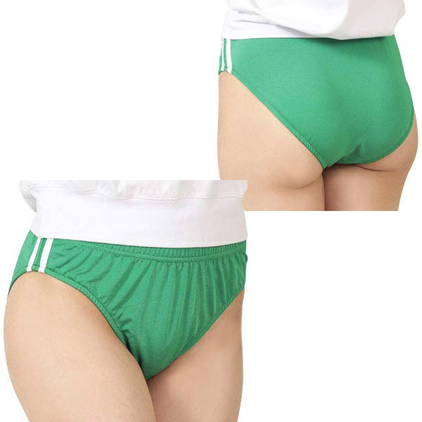 | アニコス衣装や制服とも相性抜群♪人気のコスプレ単品シリーズに緑色が登場しました!深めのハイレグカットと伸縮性の良い生地が程よいフィット感を生み出す♪両サイドに白ラインを2本施した本格派デザインの可愛いブルマです。 |