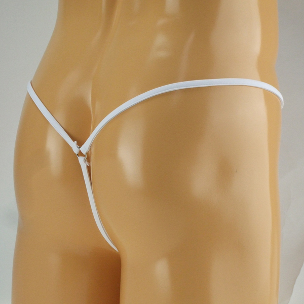| 開放的な紐下着で大胆に誘惑!男の象徴を飾るセクシーな日本製Gストリング(白)。 2wayストレッチ素材を使用 |