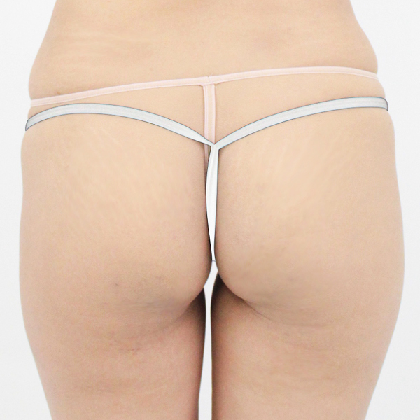 | ゴールドリングで伸縮性のある2wayストレッチ素材の紐をジョイント!極限まで露出した大胆過激な日本製のレディース用Gストリング(白)。 |