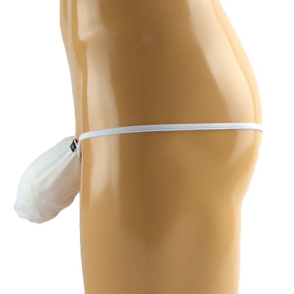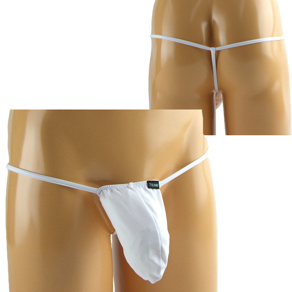 | 伸縮性が良く着け心地抜群の2wayストレッチを使用した前袋付きのメンズ用Gスト(白)。 過激な見た目にドキドキせずにはいられない!男の魅力を最大限に引き立たせる大胆セクシーな日本製Gスト。 |