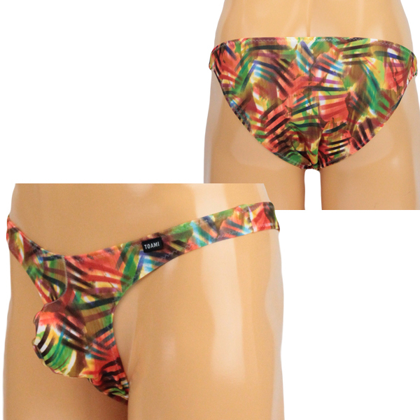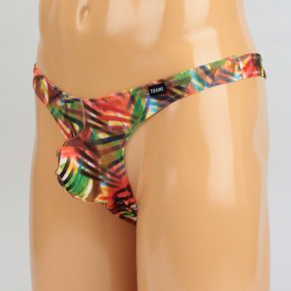 メンズ ストレッチ幾何学プリントもっこりフルバック オレンジ