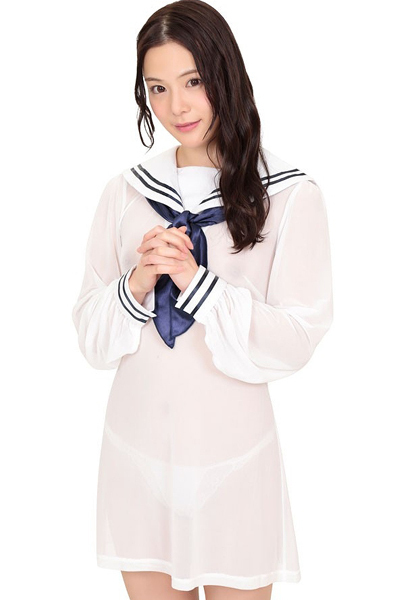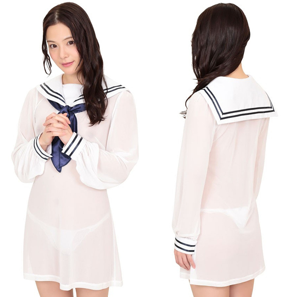 | 水で濡れたように透け感のある極薄仕様のセーラーワンピ(白)。 白で清純そうに見せながらも、ストレッチの利いたネットメッシュ生地でセクシーに演出!夏や暑い日に最適なセーラーコスプレです。 袖口、襟には2本のライン入り |