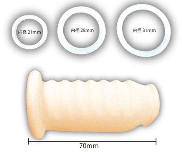 パッケージ:19.5×12.3×4.0cm 本体:スリーブ全長7.0cm・リング内径(小2.1cm・中2.9cm・大3.1cm) |