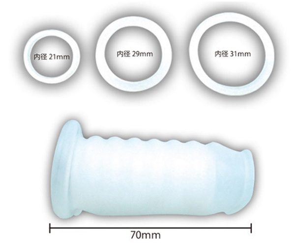 パッケージ:19.5×12.3×4.0cm 本体:スリーブ全長7.0cm・リング内径(小2.1cm・中2.9cm・大3.1cm) |