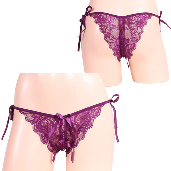 トップページ > ランジェリー > オープン ブラ・ショーツ(穴あき) > 女らしさ満開サイドリボンオープンショーツ パープル