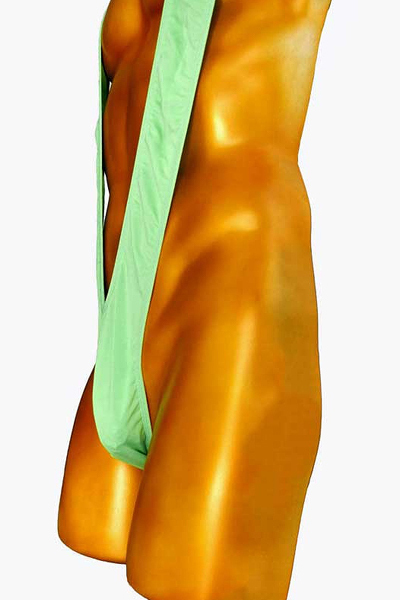 | 逞しい身体を強調する爽やかな男性用スリングショット。 股間から背中へ回り込むように大きくV字に走る生地で筋肉を猛アピール!シンプルでオーソドックスなタイプのマンキニです。 グリーンカラー、フリーサイズ |