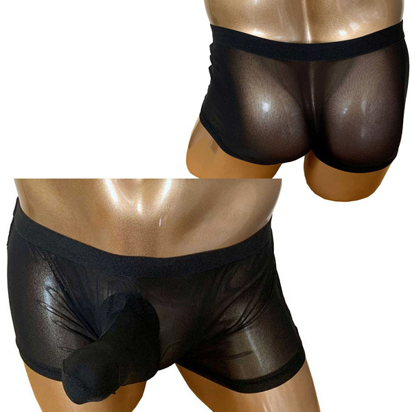 | サイズアップした状態でもしっかりホールドする男性用シアーボクサーパンツ。 フロントに余裕を持たせているため、通常時から高まった時まで変わらない着心地♪涼し気で通気性の良いメッシュ生地仕様なので、蒸れで肌に張りついて困っているという方にも最適です◎ブラックカラー、フリーサイズ |
