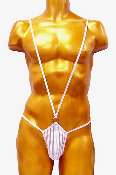 | V字ラインでシンボルを強調するサスペンダー付のメンズ用サック。 縦縞模様を描くように白地とシアー素材を組み合わせた一枚!着衣の下に身に着けることで、日常的に吊り下げられるような浮遊感をお楽しみいただけます。 ホワイトカラー、フリーサイズ |