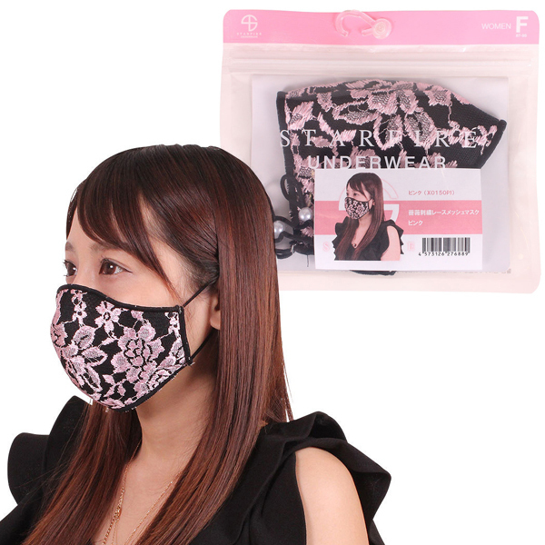 | 黒地にピンクの薔薇刺繍が可愛い柔らかな大人用レースメッシュマスク。 通気性が良く速乾性に優れているので、蒸れにくく化粧崩れが気になる方に最適!エレガントなデザインは綺麗めコーデとも相性抜群です♪抗菌消臭加工で嫌な臭いも軽減。 お洒落で実用性に優れたキュートなマスクです。 子どもにも優しいノンホルマリン仕様、サイズ調整式、不織布フィルター1枚付 ※こちらの商品は受注発注商品の為、ご注文から発送までに3、4営業日掛かる場合が御座います。 |