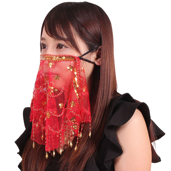 | ベリーダンスやアラビアン衣装のコーデアイテムに、通気性の良いレース素材を使用したキラキラ煌めくナイトマスク。 真っ赤なシアー素材に金のスパンコールを装飾した豪華なフェイスベール♪顔周りを華やかに魅せたい時に◎耳紐長さ調整式、不織布フィルター1枚 ※こちらの商品は受注発注商品の為、ご注文から発送までに3、4営業日掛かる場合が御座います。 |