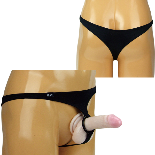 メンズ 2wayストレッチ生地大リング付きTバック ブラック