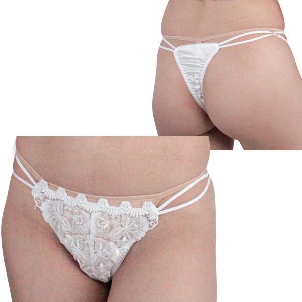 > 肌触りのいい光沢レース付き脇2本ゴムTバック ホワイト