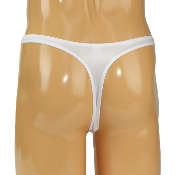 メンズ 光沢ストレッチ生地玉袋付きTバック Mホワイト