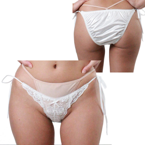 光沢生地にレース付き脇ヒモフルバック Lサイズ ホワイト