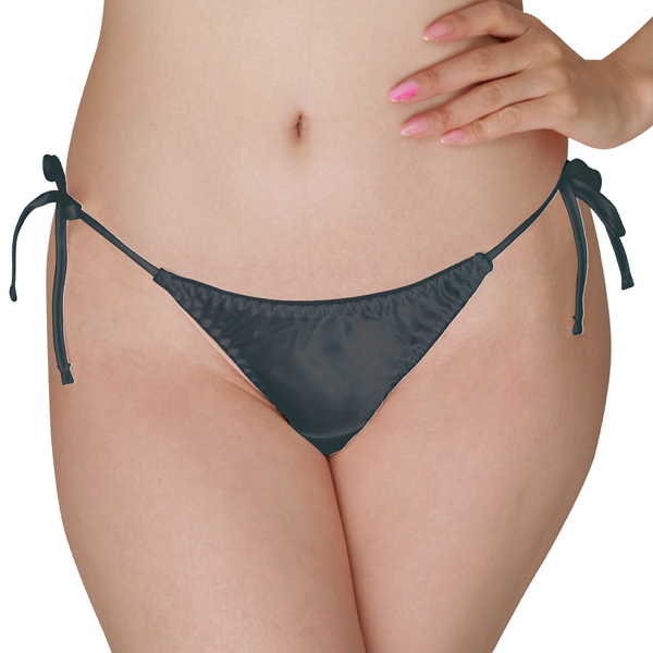 > 光沢サテン脇紐フルバック 2Lサイズ ブラック