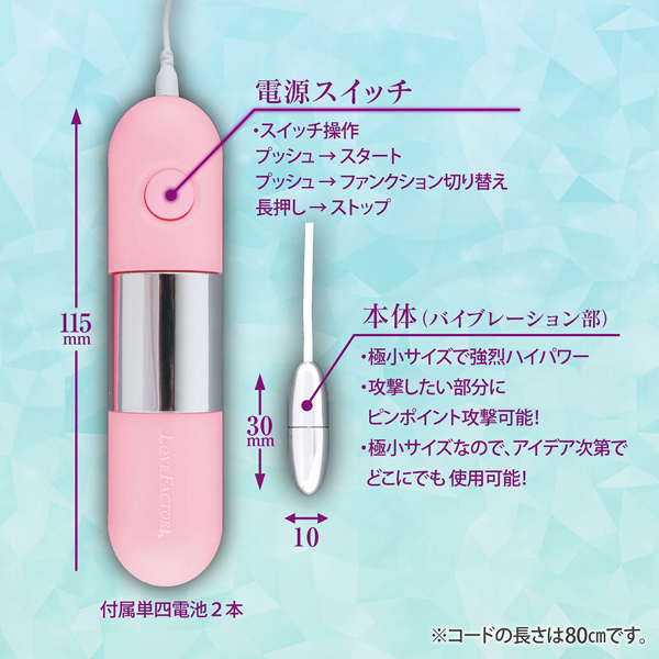 | 【単四電池×2本(付属)】長さ3cm、幅1cmの超ミニローター。 しかしながら驚きのハイパワーを搭載!極小サイズなので、当てたい場所にダイレクトに攻撃が可能。 付属の専用ベルトを使えば、手で持たないので、威力をなくすことなく、振動をダイレクトに感じられます。 指サックの中に入れて、電動フィンガーとしての使用も可能です。 |