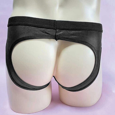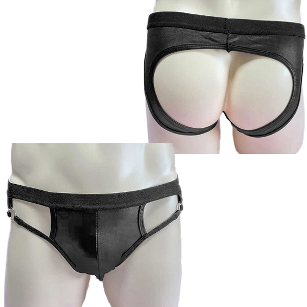 | お尻部分がパックリ開いたセクシーなメンズショーツ!光沢のあるブラックカラーがカッコいいデザイン!しっかりとした縫製ではき心地抜群です。 |