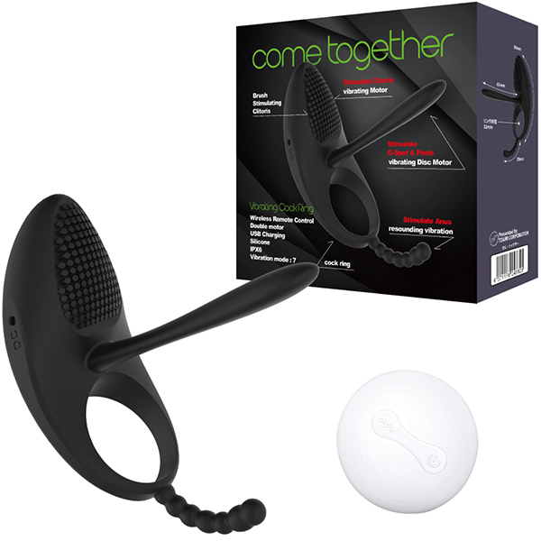 | 女性を喜ばせるコックリングが超絶進化した!クリへの振動も楽しめる電動コックリング「カム・トゥゲザー」。 電源はUSB充電式でリモコン操作が可能♪簡単に装着できてクリへの振動はもちろん、ペニスと共に挿入するサブシャフトも振動するのでアナルへもアプローチできるというトリプルギミックを搭載!中も外も男性自身も振動を味わいながらプレーが楽しめて、男性自身を締め付けながら増強を促す効果も♪各種バイブレーションがリモコン操作できるので振動変化もお楽しみいただけます!7パターンの振動機能にUSB充電式でケーブル付属。 シリコン素材でIPX6防水仕様と心強いスペックとなっております♪底部のフックしたアナルビーズのような短いシャフトはアナルに挿入することも可能です。 |