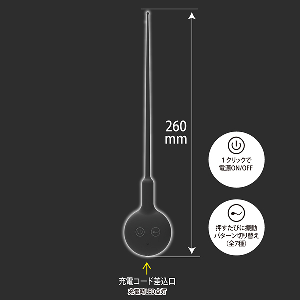 パッケージ:28.5×7.2×3.0cm 本体:全長26.0cm・挿入部径:0.2×0.5cm USB充電式 |