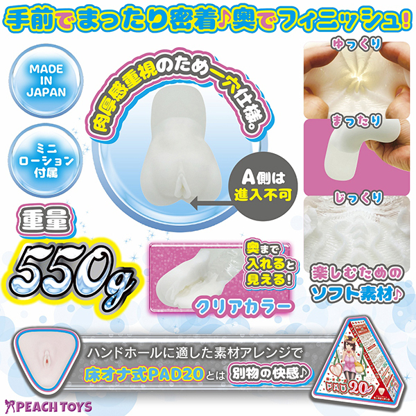 | 『手前でまったり密着♪奥でフィニッシュ!』まったりと楽しみたい!20HANDに白いSOFTバージョンが出たよ!!もっと柔らかく、じっくり楽しめるタイプ白い「20HAND SOFT(トゥーゼロハンドソフト」の登場です!「トゥーゼロ」内部構造とは『的確な快感ポイントにロングヒダを配置しながら、なんとも美しいヒダ模様』内部構造の良さはそのままに、まったりじっくり楽しめる!非貫通/ローション付 |