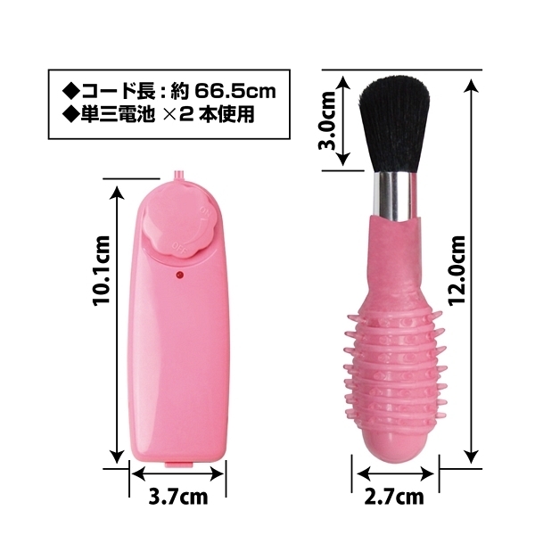 | 刷毛で焦らしながらローターでイカせる!気分を高揚させたいときやいつもと違う雰囲気で楽しみたいときにはコレ!刷毛による絶妙な感触が楽しめるローターです♪強力モーターを内蔵していてパートナーの体を撫でるだけでも楽しめますし、ローターの表面にはイボヒダ加工が施されているので当てたり挿れたりしても楽しめます!電源は単3電池2本で動くタイプでコードで繋がったコントローラーにセットする仕様です。 強弱はダイヤル式で簡単に操作できます♪ |