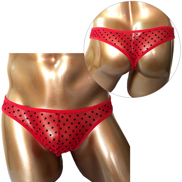 | 他とは差をつけたいメンズアイテムならコチラ!バッドダディブランドから情熱的な赤いシースルー生地のワイルドビキニパンツが新登場♪すいかの種のような水玉ドットがキュートさを演出します。 |