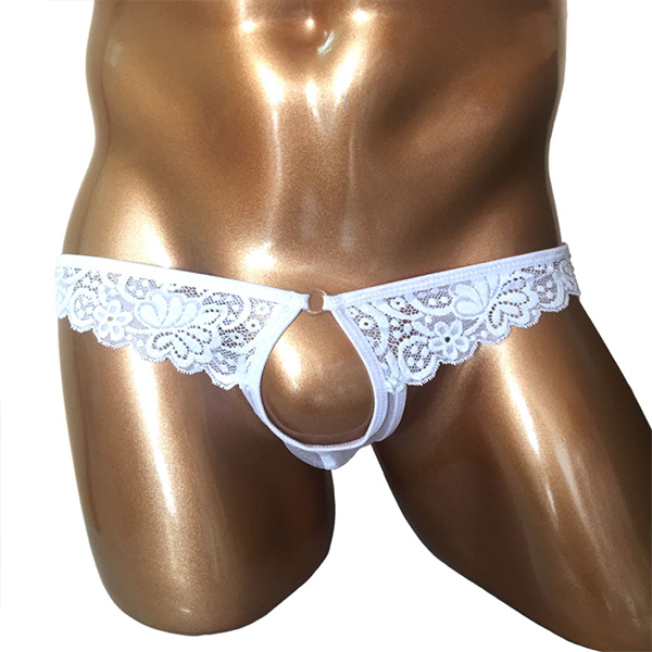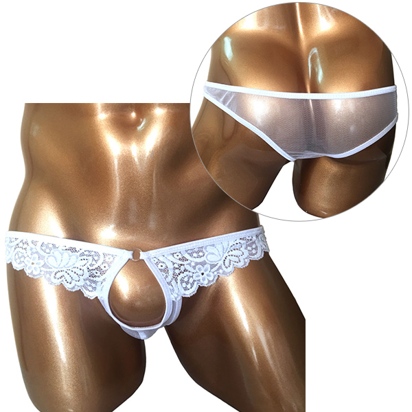 | 開放感バツグン!男のシンボルを魅せつける竿出しホールレースショーツです♪レースとメッシュ生地だから全部スケスケ!締め付け感の苦手な方は是非どうぞ♪お洗濯の際は、優しく手洗いするか、網ネットに入れて洗濯してください。 |