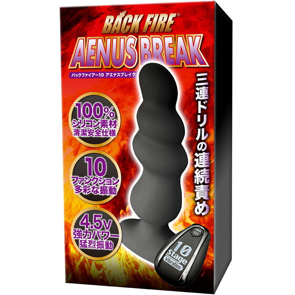 | 奥へと誘うツイスト形状と10種類のバイブパターンが自慢の「バックファイアー10(アエナスブレイク)」です。 単四電池を3本使用した4.5Vの強力パワーに10ファンクションシステムを搭載!100%シリコンの電動アナルプラグで強力な振動と独特な形状が嫌というほど攻めまくる♪アエナスブレイクは3連続の山の形状がほじくるようなドリル責めを実現!強烈な快感を引き起こしながら、振動とともに無限大の恍惚と快感を与えてくれます♪先端のヘッドはするっと入りやすく、3連続のマウンテン構造がドリルのようにねじり込みながら、ほじくる快感を味わわせてくれます。 |