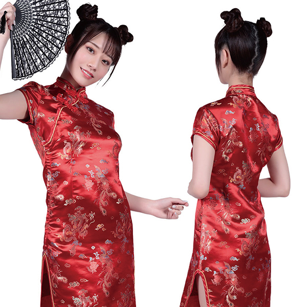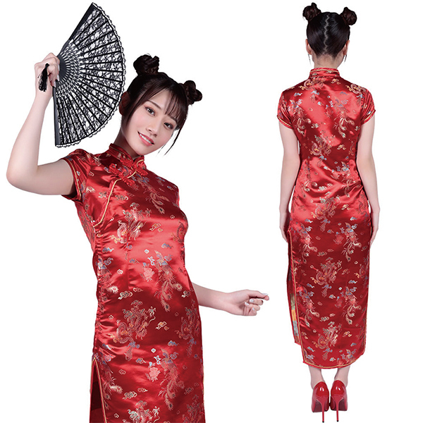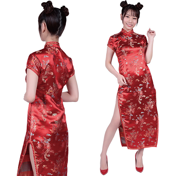 | ロングのスリットからチラリと覗く美脚が魅力的なチャイナコスチュームです♪本格的なチャイナ・ガールに変身できるデザインで、長めのスリットが妖艶な雰囲気を演出!タイトなシルエットでボディラインもしっかりアピールでき、両サイドの長いスリットが脚を綺麗に魅せつつドレスの中も想像させるデザインとなっています♪襟元も生地の柄も伝統的なチャイナっぽさを踏襲した秀逸なデザインとなっています。 |