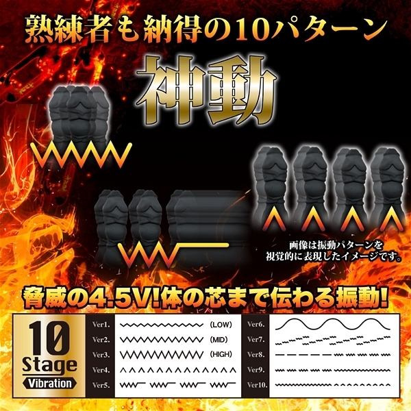 | 見た目はオブジェのような形状!NOVAシリーズの中でも一番激しいトリッドなアイテムの「バックファイアーNOVA TORRID」です♪入り口は25mmとこれまでのNOVAシリーズの一番太い部分を超えるレベルの太さで最大径は30mm!張り巡らされた縄模様の凹凸が刺激を繰り返しながら角度や向きによっては、また違った快感と刺激を味わわせてくれます♪カラーはシックなブラックでハミ出る肉感的な部分が挿入のアクセントになっています!強弱含め10種の振動機能を備え、単4電池3本で駆動するお手軽さも人気です♪ |