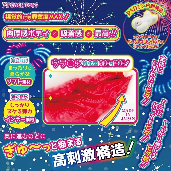 | 「床オナ式PAD22」の内部は、ウラ●ジ刺激重視の構造奥に進めばぎゅんとキツくなる高刺激構造!全体に施された数多くのヒダに加えて奥に進めば進むほど、刺激的に締まる構造。 試行錯誤の結果、この高刺激内部構造の良さはそのままに、ハンドホールに適した素材感をアレンジいたしました!吸着感とヒダ感もしっかりと最適化! |