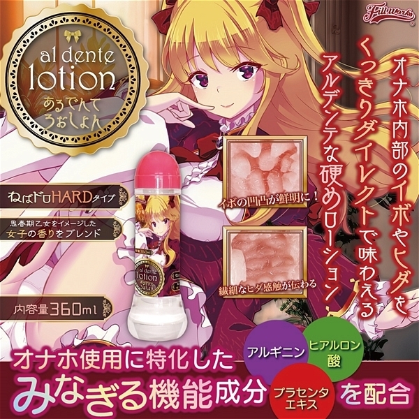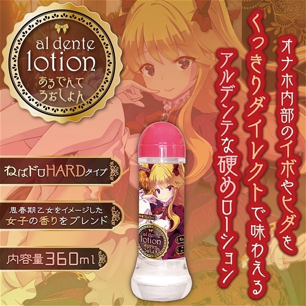 | ねばドロHARDタイプ「あるて?んて ろーしょん」はオナホ内部をくっきりダイレクトに味わえる「アルデンテ」な硬めローション。 イボの凹凸が鮮明になり、繊細なヒダ感触もしっかり分かる「硬め粘度」で配合しました。 成分には「アルギニン・ヒアルロン酸・プラセンタエキス」を調合。 みなぎる機能成分でオナホ使用に最適なローションとなっています。 |