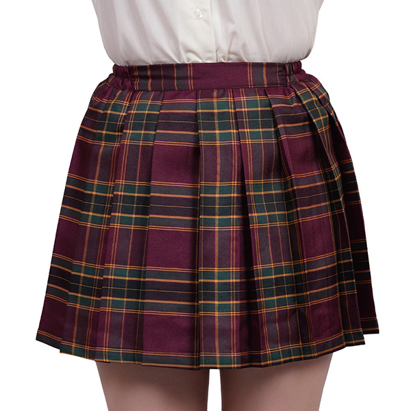 | コーディネートしやすい人気のえんじとグリーンを基調としたプリーツスカート。 |