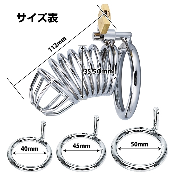 | 鉄の輪が連なった男性用の本格貞操帯の固定リングが3種類に増えて再登場!南京錠を掛けると、勝手に外すことは不可能!勃起は無論不可能。 日常的につけ射精管理を行えます。 付けたまま排泄も可能です。 |