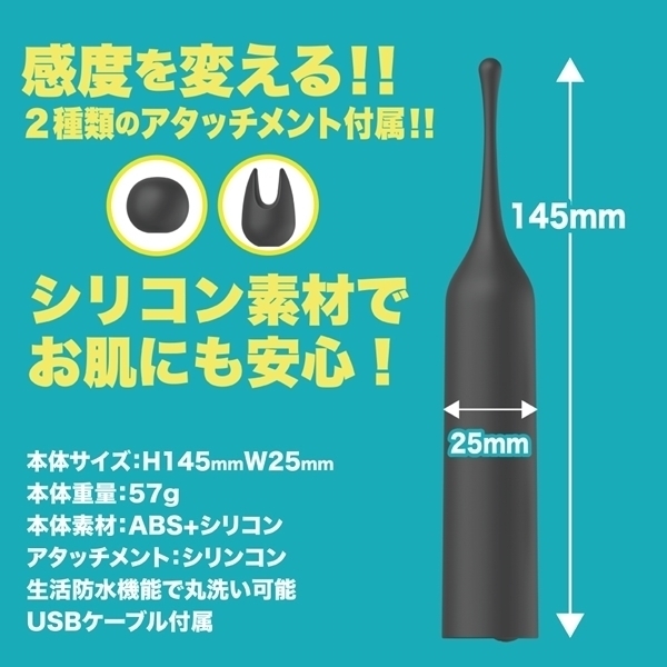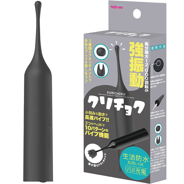 | 超ピンポイントシリコンヘッドローターのクリチョク。 小さなヘッドだから集中した毎分12000回転の強振動を2種のシリコンヘッドを使い分けてお好みの場所で楽しんでください。 振動パターンも10種搭載、本体重量57gと超軽量で生活防水タイプの為、丸洗い可能。 ●カラー:ブラック |