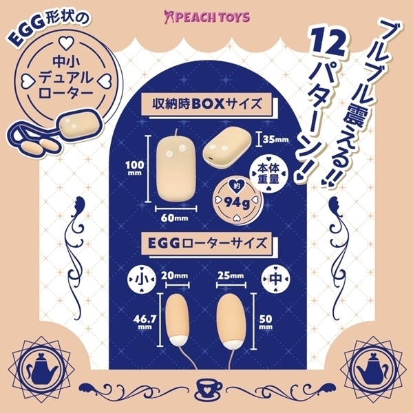 パッケージ:16.0×7.0×5.0cm 本体:収納時BOX10.0×6.0×3.5cm・EGGローター(小)4.6×2.0cm・EGGローター(中)5.0×2.5cm・コード長約70.0cm USB充電式 |