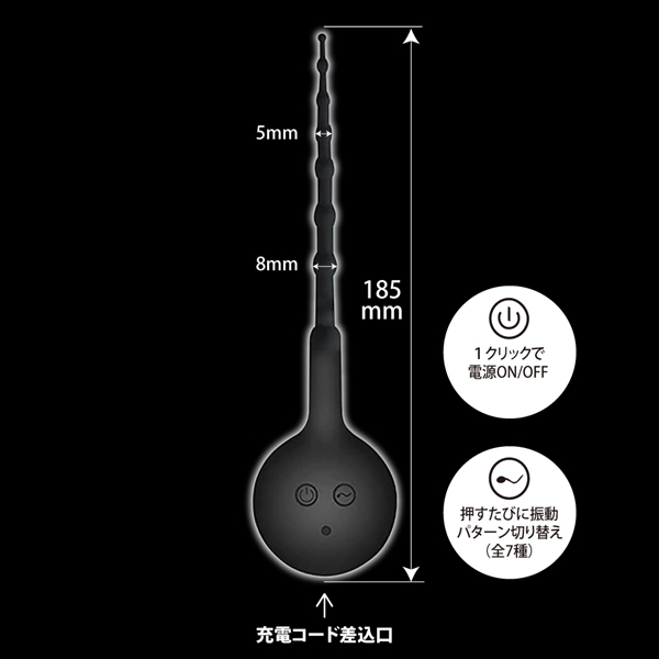 パッケージ:28.5×7.2×3.0cm 本体:18.5cm・触手部突起最大径0.8cm USB充電式 |