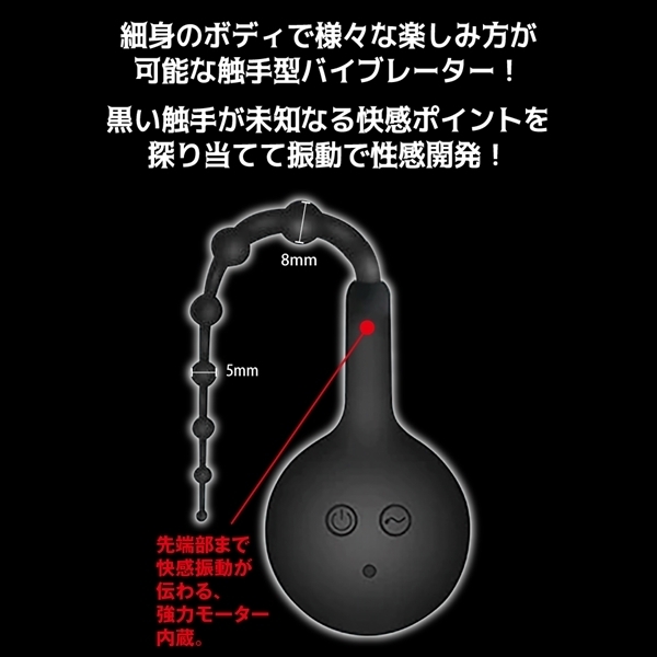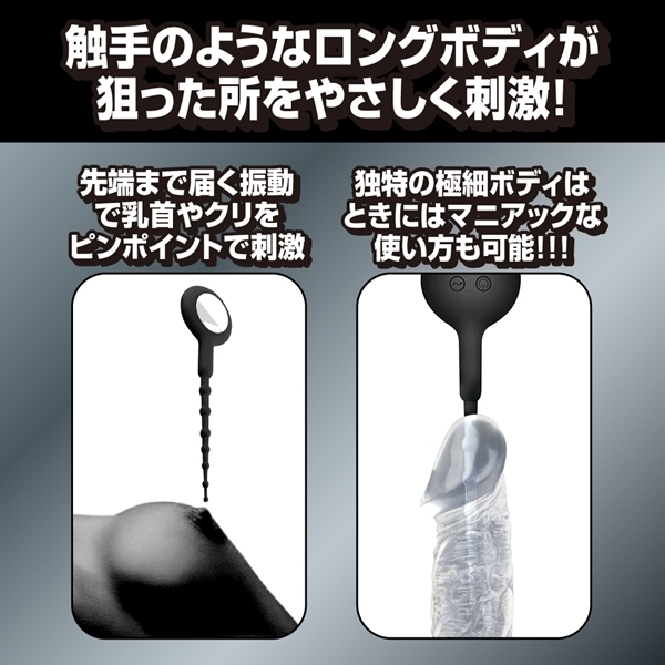 | 極細のボディで様々な楽しみ方が可能な触手型バイブレーター<ブラックテンタクル>に、サイズを小さく!触手の部分に突起を施した、セカンドバージョンが新登場!黒い触手が未知なる快感ポイントを探り当て、振動で性感開発!触手部分に施された複数の突起が、更に心地よい刺激を与える!独特な極細ボディは全身の敏感部分を表面から刺激するもよし、マニアックなところを刺激するもよしな、無限大の可能性を秘めた万能ローターです♪ |