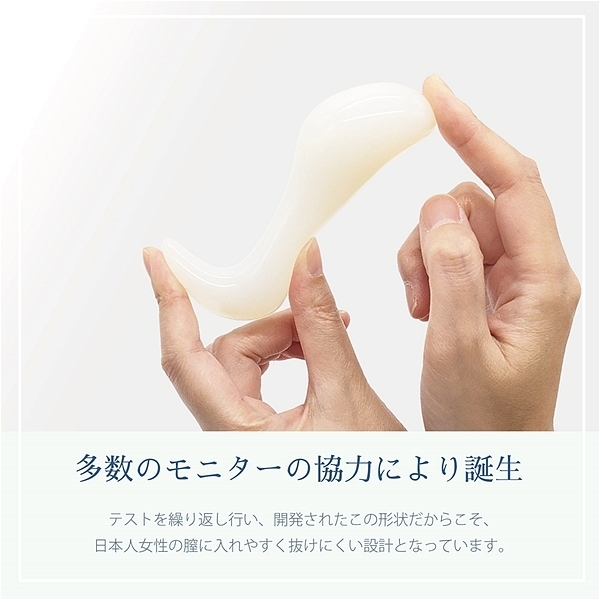 | いれるだけの簡単、膣サポトレーニング初めの一歩!毎日継続して使い続けることで、膣壁を支える骨盤底筋のトレーニングをサポートします。 多数のモニターの協力を得て、テストを繰り返し誕生したこの形状だからこそ、日本人女性の膣に入れやすく抜けにくい設計です。 短時間から始められるので、膣トレ初心者さんにも。 慣れてきたら、徐々に使用時間を増やしてみてください。 |