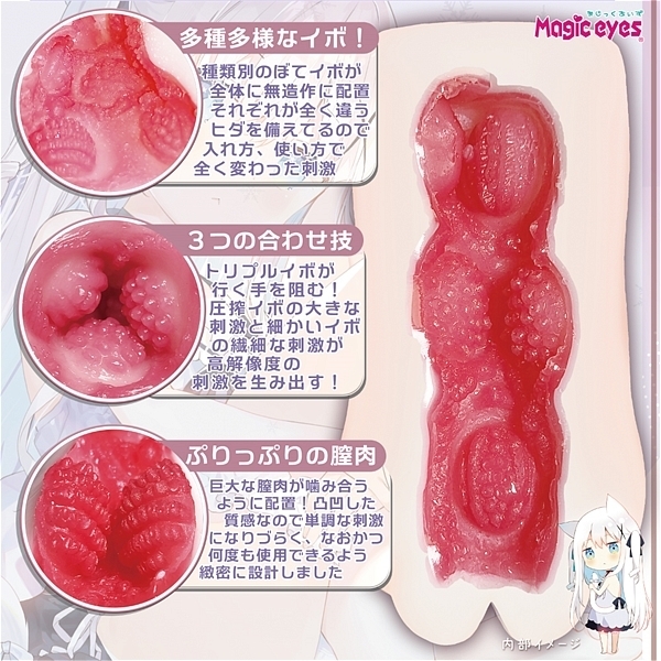 | モチモチふわふわで雪のように白い肌。 くぱぁと入り口を開くと妖艶で巨大な膣肉が迎えてくれます。 入口部、中段部、最深部にそれぞれ方向とテクスチャーの違うぼてイボを各3つ配置したことにより様々な使用感を味わえます。 310gと実用性にも優れたサイズ。 パッケージイラストは人気イラストレーター「ユイザキカズヤ」先生の描き下ろしです。 |