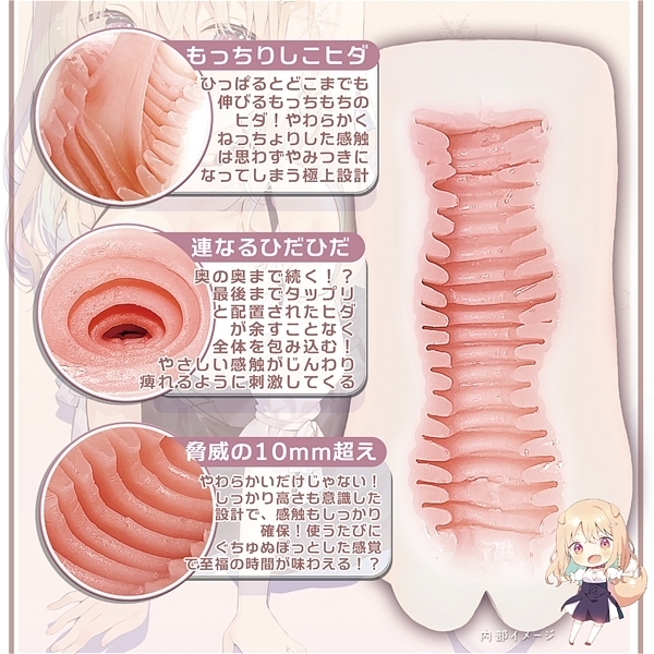 | モチモチふわふわで雪のように白い肌。 10mmを超える連なるヒダヒダを一枚ずつ掻き分けながら奥まで侵入。 綺麗なボディと柔らかな感触で至福な時間を味わえる。 300gと実用性にも優れたサイズ。 パッケージイラストは人気イラストレーター「ユイザキカズヤ」先生の描き下ろしです。 |