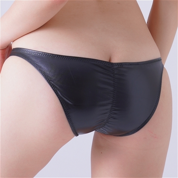エナメル生地の光沢感がセクシーさを際立たせる、食い込みフルバックショーツ。