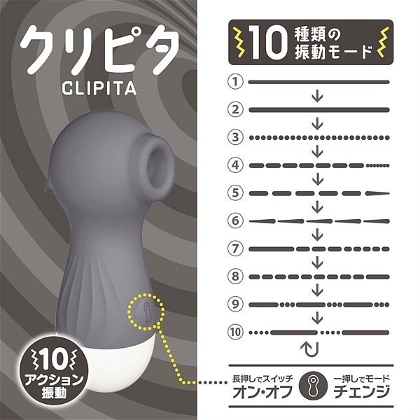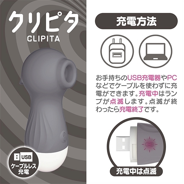現在各所で大ヒット中のクリピタに新色登場!!煩わしいコード要らずの直充電、12mmの吸引部、10アクションの振動、素材はシリコンで収納ポーチまで付属した全5色になったクリピタをお試し下さい。